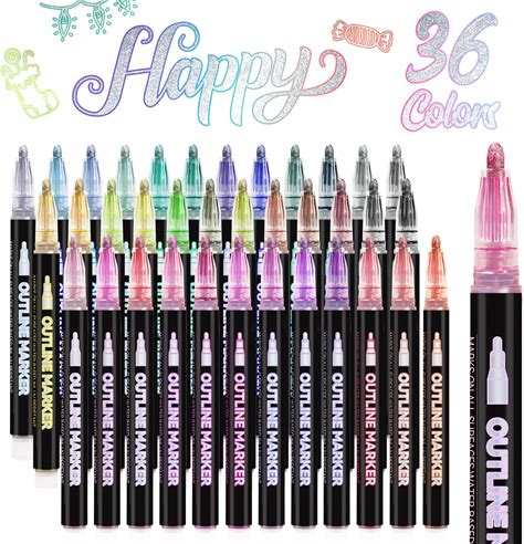 Outline Markers Pens 36 Colors, Shimmer Double Line Outline Markers Glitter Markers Set For Christmas Greeting Card Making,Drawing And Art Supply