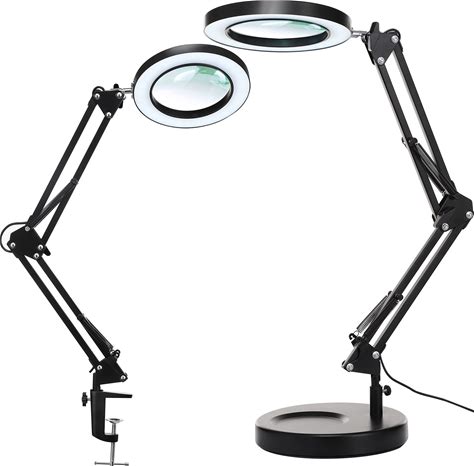 KIRKAS 10X Magnifying Glass With Light And Stand, 2-In-1 Stepless Dimmable LED Desk Lamp With Clamp, 3 Color Modes Lighted Magnifier Swivel Arm Light