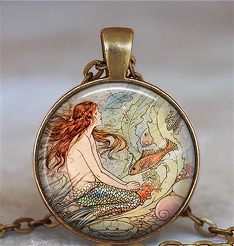 Fairytale Mermaid Necklace, Key Chain Or Brooch, Mermaid Art Gift For Swimmer Little Mermaid Antique Fairy Tale Mermaid Key Ring Fob