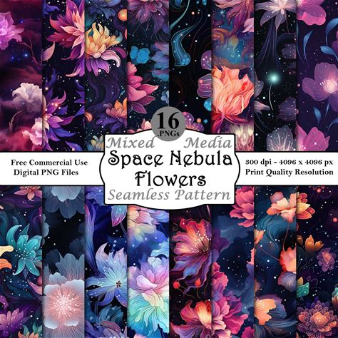 Space Nebula Flowers Seamless Pattern Bundle Digital Papers Printable Instant Download Commercial Use Floral Celestial Galaxy Abstract PNG