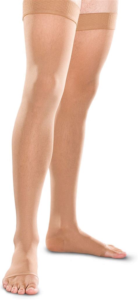Therafirm Men's And Women's Open Toe Thigh High Hosiery With Grip Top 20-30 Mmhg In Sand, Size Medium | Ames Walker