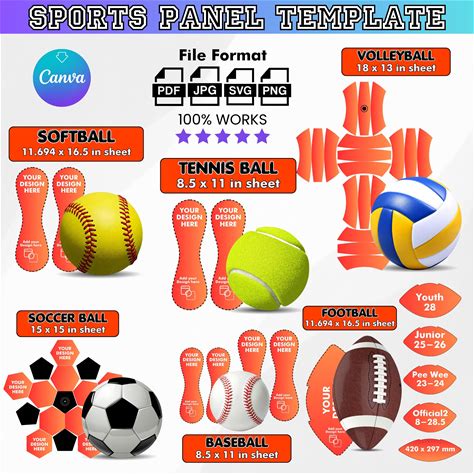Sports Panel Templates Bundle, Baseball Panel Template, Softball Panel, Football Panel Template, Canva Template Instant Download