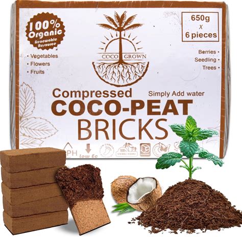 Cocogrown Compressed Coco Coir Bricks - 100% Organic, 650G X 6 Bricks - Expands To 8L Each, Eco-Friendly, Biodegradable, No Chemicals - Ideal For