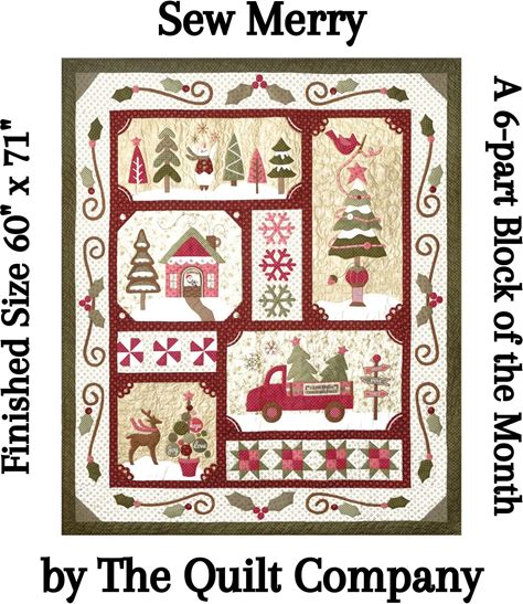 Sew Merry Quilt Pattern Set By The Quilt Company 6 Block Of The Month Christmas Snowman Applique Patterns, Buttons, Accessory Fabric Pack