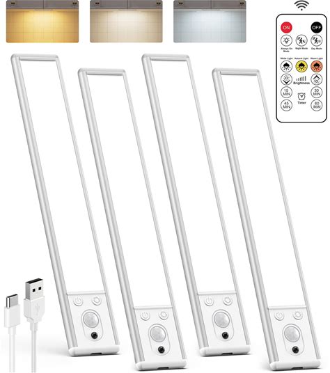 PIR Motion Sensor Ceiling Light USB Rechargeable Dimmable 3 Colors Remote Control Timer Wireless LED