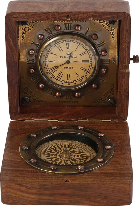 JUNZALINAUTIC Handmade Authentic Clock Compass In Rose Wood Box.