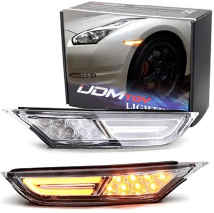 Jdm Clear Lens 3D Amber Full LED Front Side Marker Light Kit For 2007-Up Nissan Gt-R, Powered By 30 LED Diodes, Replace OEM Amber Sidemarker Lamps