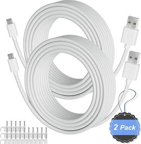 Sumind 2 Pcs Micro Usb Extension Cable 10 Ft/ 3 Meters, Micro Usb Power Extension, Micro Usb Female To Usb Male Adaptor Compatible With Wireless Security Camera Flat Power Cable, Cable Clips Included