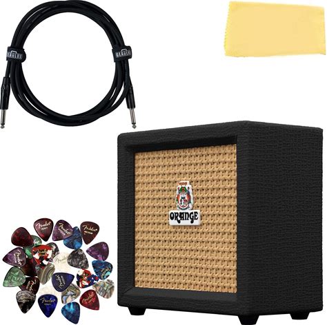 Orange Crush Mini Guitar Combo Amplifier - Black Bundle With Instrument Cable, Picks, And Austin Bazaar Polishing Cloth