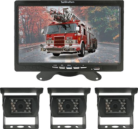 Commercial Fire Truck Rearview System 3 Wireless Backup Cameras And Monitor 7" Split Screen Full Color Waterproof Dash & Mount Overhang