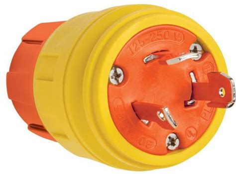 P&S 28W09am 30A 120/208V Locking Non-Nema Plug, Orange/Yellow