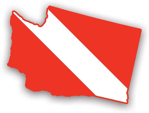 Washington State Shaped Diver Down Flag Sticker - Decal - American Made - UV Protected Scuba Flag Diving Dive Wa