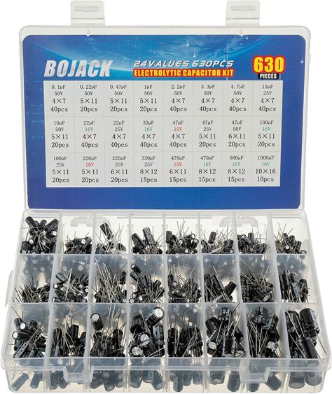 BOJACK 24Value 630Pcs Aluminum Electrolytic Capacitor Assortment Box Kit Range 0.1Uf-1000Uf