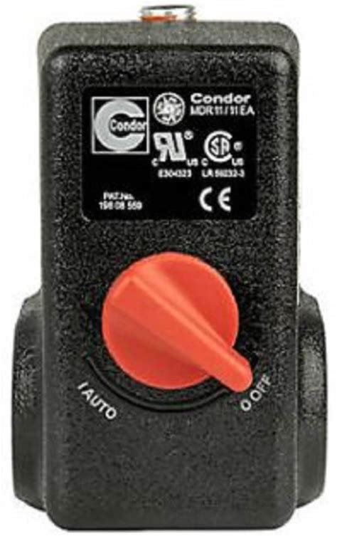 Condor Campbell Hausfeld Air Compressor Switch 100-135 PSI, Push Button, Black, Automatic, 1/4" NPT, 4-Port Manifold