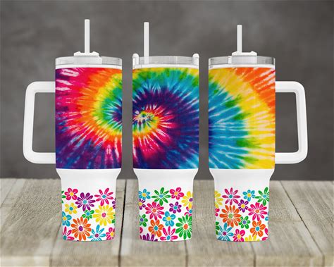 Bright Tie Dye Hippie Floral Retro Pattern Design 40 Oz 2 Piece Tumbler Sublimation Template Digital Download PNG Summer Bright Pattern