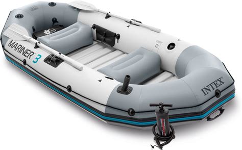 INTEX 68373EP Mariner 3 Inflatable Boat Set: Includes Deluxe 54in Boat Oars And High-Output Pump - Wear-Resistant Keel - Removable Fishing Rod Holders