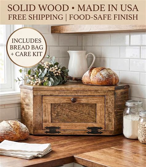 Corner Bread Box Wood Breadbox Kitchen Countertop Bread Box Far