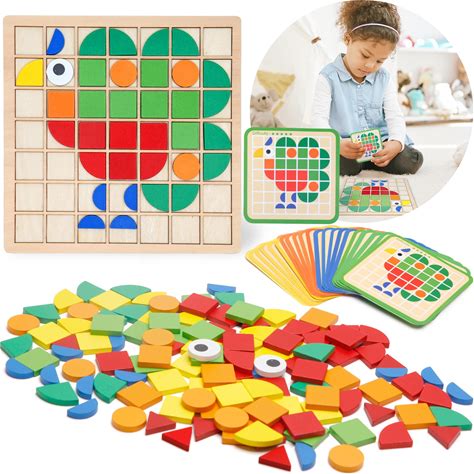 Zycolo Montessori Tangram Educational, Geometric Shapes Puzzle Toys With 120Pcs Wooden Puzzle Blocks And 20Pcs Cards, Colorful Pattern Montessori