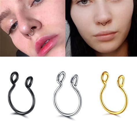 1 Set Fake Piercing Nose Ring Hoop Septum Non Piercing Nose Clip Hoop Stainless Steel Magnet Fashion