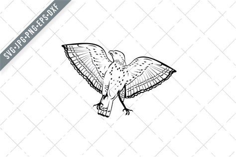 Broad-Winged Hawk Flying Front View Retro Woodcut Black And White Style Svg-Broad-Winged Hawk SVG-Cut File-DXF-Jpg-Png