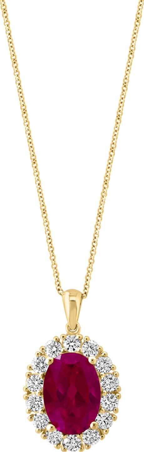 Effy Lab Grown Ruby (6-3/4 Ct. T.W.) & Lab Grown Diamond (1-3/8 Ct. T.W.) Oval Halo 18" Pendant Necklace In 14K Gold - Ruby