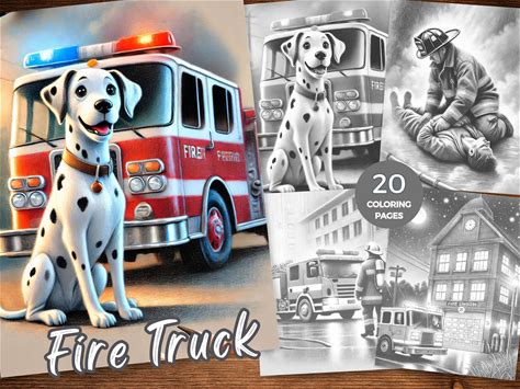 Fire Truck Coloring Book Firefighters Coloring Pages For Stress Relief Mindfulness Coloring Fire Truck Grayscale Coloring Instant Download