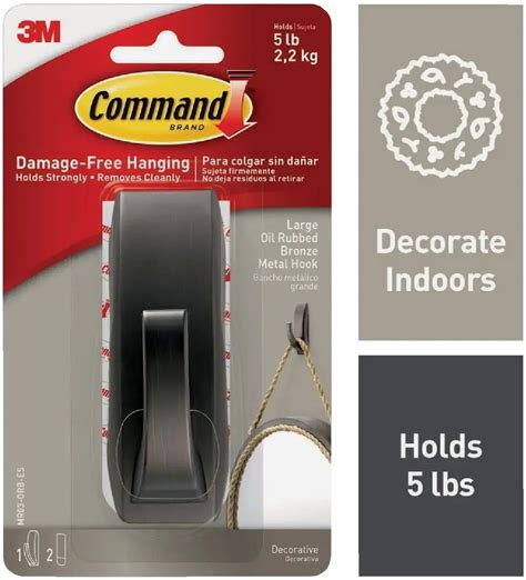 Command Large Modern Reflections Metal Hook Oil Rubbed Bronze 1 Hook 2 Strips MR03-ORB-ES