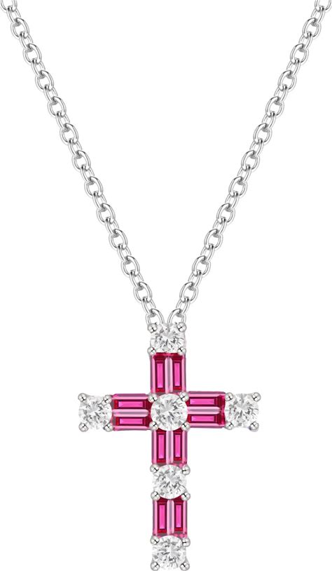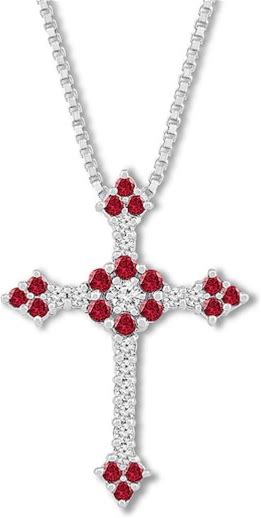 Lab-Created Ruby Cross Pendant Necklace | Sterling Silver | White | Size 18" | Helzberg Diamonds