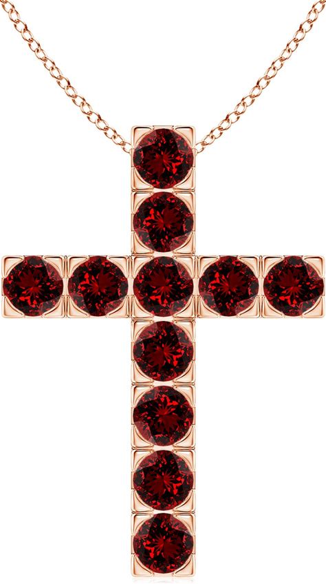 Angara 3.74 CTW Flat Prong-Set Ruby Cross Pendant In 14K Rose Gold