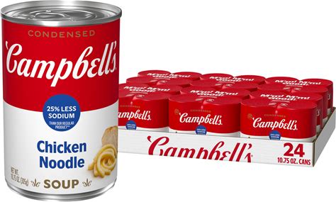 Campbells Condensed 25% Less Sodium Chicken Noodle Soup, 10.75 Oz Can (24 Pack)