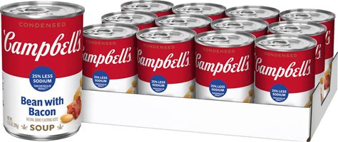 Campbells Condensed 25% Less Sodium Bean With Bacon Soup, 11.25 Oz Can (12 Pack)